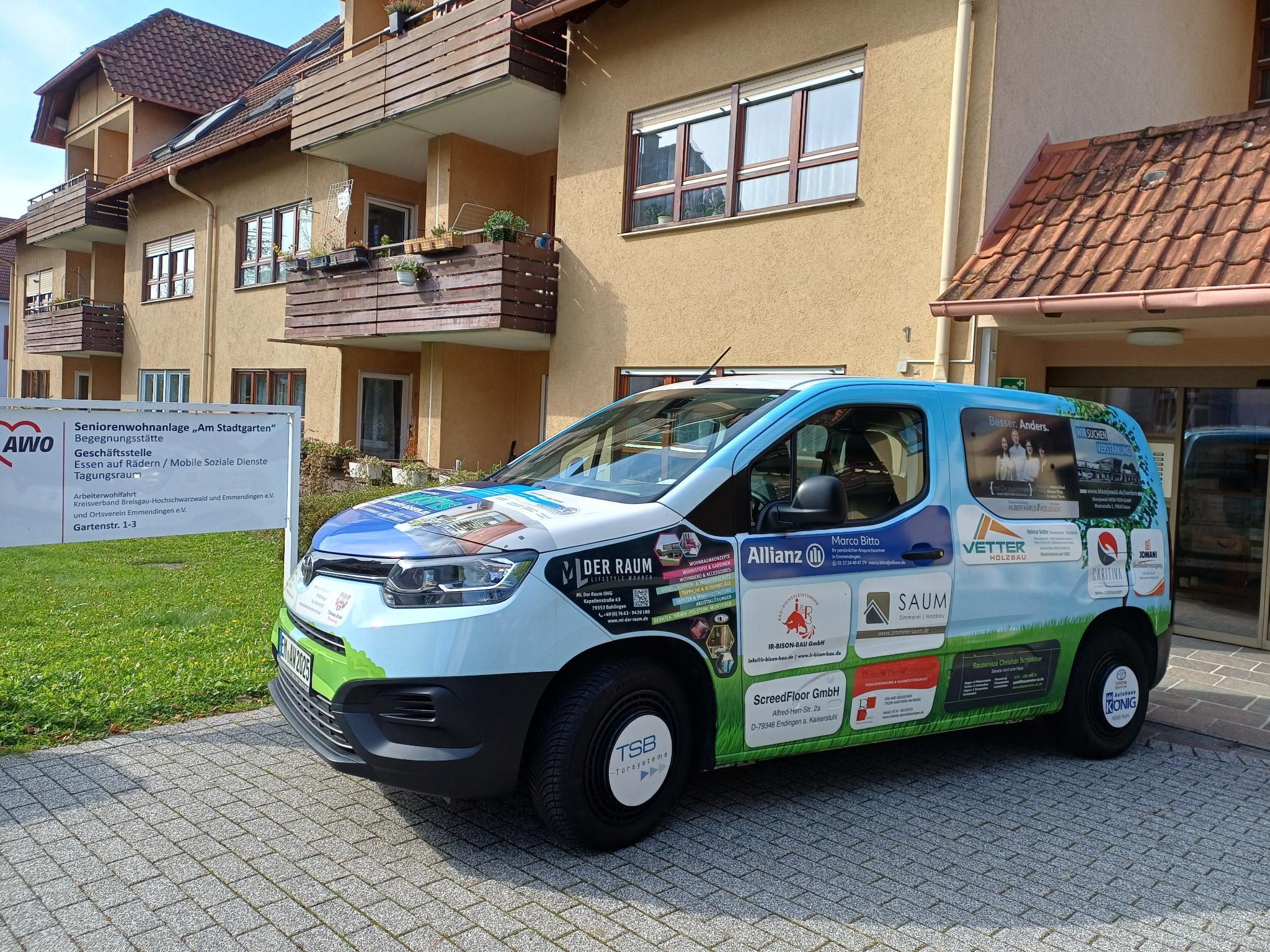 Dank der großzügigen Unterstützung unserer Sponsoren dürfen wir uns über ein neues Werbefahrzeug freuen! Dieses Fahrzeug wird künftig im Einsatz sein, um unser Essen-auf-Rädern-Angebot und weitere soziale Unterstützungsleistungen zuverlässig zu ermöglichen.