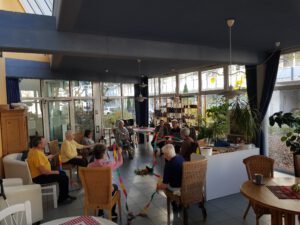 Besonders schön: Das Angebot kommt nicht nur bei den Bewohnerinnen gut an – sogar ein Herr lässt sich regelmäßig von der positiven Stimmung anstecken und macht motiviert mit.