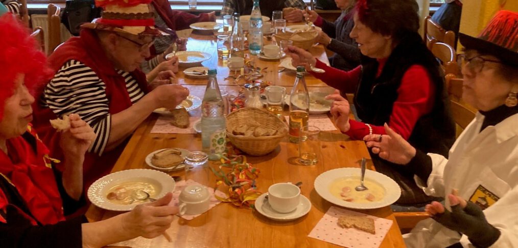 Pünktlich um 10:54 Uhr startete in unserer Wohnanlage der närrische Auftakt zur Fasnet. Der Besuch des Kindergartens brachte gleich fröhliche Stimmung mit: Beim gemeinsamen Singen wurde gelacht, geklatscht und kräftig mitgemacht. Auch die Begegnungsstätte zeigte sich liebevoll närrisch dekoriert, und unsere Bewohnerinnen und Bewohner kamen in ganz unterschiedlichen, kreativen Kostümen zusammen.