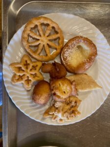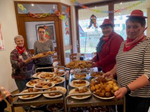 Zum Mittagessen gab es eine leckere Kartoffelsuppe mit Wienerle und Brot. Den süßen Abschluss bildete feines Fettgebackenes von den Landfrauen aus Freiamt – von Striible bis Fasnetsküchle, einfach köstlich!
