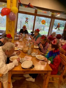 Für die musikalische Begleitung sorgte Gerd mit seinem Akkordeon: Es wurde eifrig mitgesungen, eine Polonaise durchs Haus getanzt und beim Fasnachtshit „Gute Laune“ waren alle mit schwungvollen Bewegungen dabei.