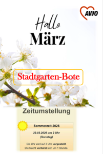 - An Werktagen: Mittagessen im Begegnungsraum der AWO / Fa. Zahner